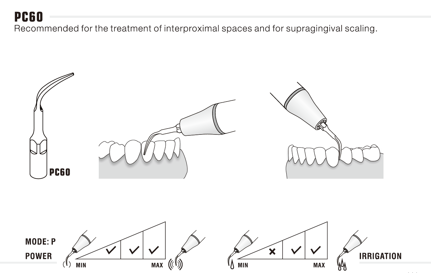 PC60: Empfohlen für die Behandlung von Interproximalräumen und für die supragingivale Skalierung.