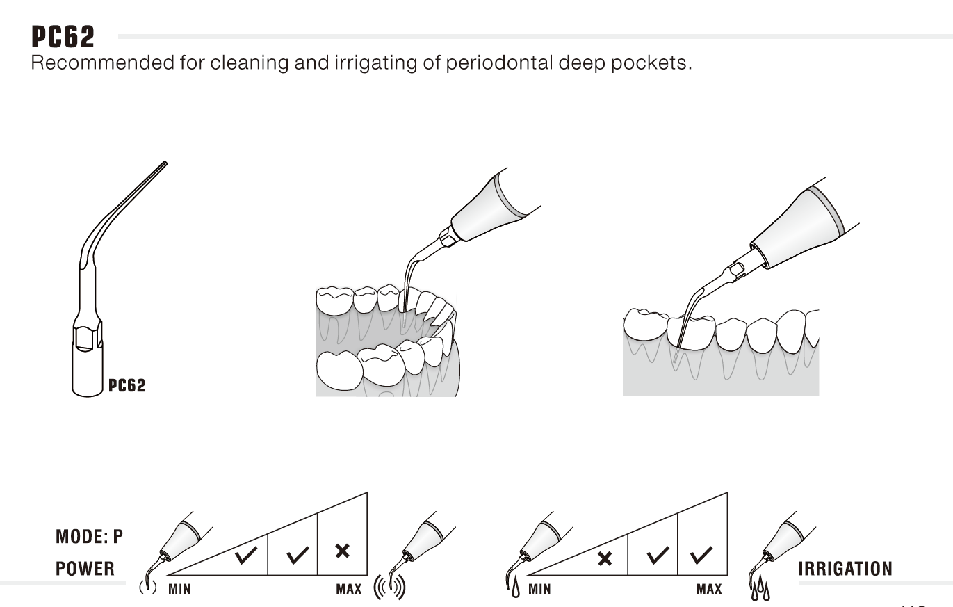 PC62: Empfohlen für die Reinigung und Spülung von parodontalen tiefen Taschen.